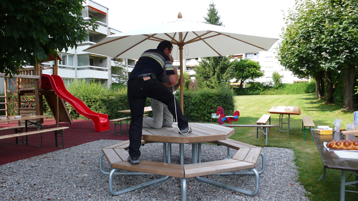 Jetzt passt auch der schöne Sonnenschirm in den Tisch